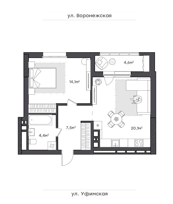 Двухкомнатная квартира 46,00 м2 по ул. Воронежская 38б за 8350000 руб. |